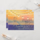 Enjoy this digital watercolor of an evening beach view with string lights for an engagement party at the beach! View of a lifeguard stand and orange sunset over a beach and string lights.