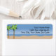 Beach Vista Return Address Labels. Add your custom details online. Vibrant full colour design. Green palm trees, blue water and sand