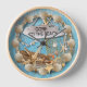 GONE TO THE BEACH, reads the driftwood notice on this seaside themed wall clock. 12 scallop shells fixed to a circle of rope are used in place of numerals. Beach hut effect background with shells, starfish, seahorse and fishing net decoration.