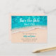 This modern Save the Date card features a top view of the beach as the waves break in the shore. The design is perfect for a Summer wedding, a beach wedding, or a destination wedding. The colours are soothing and warm.