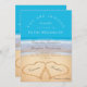 Beach Wedding 2 Hearts Sand Wedding Ocean Blue Inv Invitation