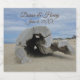 This beer bottle label offers a beautiful way to further personalise your beach wedding reception or offer a unique keepsake to your guests. This photo captures a large piece of driftwood that has been washed up onto a Pacific Ocean beach and has slowly formed a hollow circle in it's centre. The brown sand compliments the blue sky studded with layers of clouds. The bride and groom's name along with the wedding date can easily be personalised.