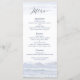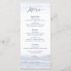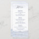 Nautical beach wedding menu cards in blue and white with watercolor ocean waves.
