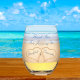 Beach Wedding Couples Names in Hearts in Sand Tha Stemless Wine Glass