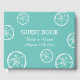 Beach wedding guest book with sand dollar design. Teal blue and white colour palette. Elegant template with names of bride and groom. Part of matching collection. Perfect for summer and tropical destination marriages in Florida and elsewhere.