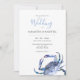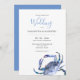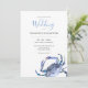 These customisable beach wedding invitations showcase a charming watercolor crab in soft shades of blue, perfect for beach weddings on a budget. The design offers a stylish yet affordable way to set the tone for your seaside celebration.