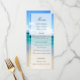 For the beach bound bride and groom, here's an easy to customise wedding menu template for your reception. Sparkling blue ocean in the background with sandy beach and blue and white clouds. Lovely photo; lovely for your beach parties!