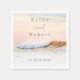 These ocean sunset beach wedding cocktail napkins feature a minimalist modern script font on a warm coastal waves background. Part of our beach wedding stationery suite, these unique beach themed wedding napkins can be personalised with your own wording and details. From Florida to Hawaii to a destination tropical wedding celebration, these napkins will tie your beach wedding decor together!