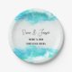 Beach Wedding Paper Plates Blue Waves Watercolor by © Cathy Thompson. Gorgeous design of painted watercolor blue waves on the beach. Perfect for the Bride and Groom looking for a unique theme and design.