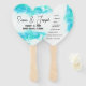 Beach Wedding Program on hand held fans Blue Waves Watercolor by © Cathy Thompson. Gorgeous design of painted watercolor blue waves on the beach. Perfect for the Bride and Groom looking for a unique theme and design.