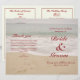 This beach wedding program features a background of a photo of a sandy beach on the cover while the inside of the program features a plain ivory background. You can easily personalise with your own information. Feel free to add and delete text as needed. We also offer coordinating invitations and enclosure cards, save the dates, stamps, favour stickers, thank you notes, magnets and other items to create a cohesive look to any wedding celebration.