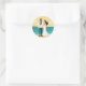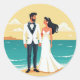 Includes 20 small stickers on one sheet. Cute illustration of a couple in wedding attire standing on the beach at sunset, perfect for wedding celebrations.