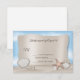 Beach RSVP cards, exclusively designed by Artistically Invited, for a beach themed wedding with sea shells, sand dollars, a starfish, and a message, over a blue sky. They're designed to match the Message from a Bottle Beach invitations.