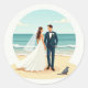Includes 20 small stickers on one sheet. Delicate wedding stickers featuring a bride and groom on a serene beach, perfect for wedding celebrations or anniversary milestones.