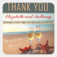 Romantic beach wedding thank you stickers with red starfish in the sand, white sea shells, paper boat and two sparkling glasses of champagne. The picture was taken during a beautiful sunset, with a professional photo camera and is very sharp and clean. Looks amazing with the wedding favours.