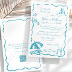 Get your guests excited for your special day with this fun and stylish beach wedding invitation! Featuring simple original, whimsical hand-drawn doodle sketches of seashells, waves, and coastal charm, this design brings playful energy to your celebration. Script font and a soft wavy blue frame on a crisp white background adds a breezy, modern touch, perfect for seaside, tropical, or destination weddings. And it's budget-friendly with a Smart RSVP Solution: The back features a QR code for quick RSVP responses.