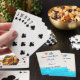 Bought one deck of cards and designed it to describe our Canasta Tournament. Needed only one deck as they are to be used to pick teams and colors for each team. We are a club in Florida so I picked out a beach theme. Colors are gret and on the Front it says the name of our club, the 2nd annual tournament and the date. Each year I'll try to come up with a different theme. I didn't take any photos, but the photo provided here is very accurate.