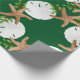 Quality Christmas wrapping paper on a roll with starfish and sand dollars "beach wreath" design. This large image is printed over a dark green background colour, with seashells and holly in brown, white and green making a circular wreath pattern. If you don't see a background colour you like, you may choose your own in the "customise further" area.