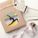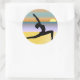 © Sunny Mars Designs - Beach Yoga Warrior Pose Customizable Round Adhesive Stickers - Cool, vibrant custom novelty beach yoga custom round stickers with a black silhouette of a woman practicing yoga on the beach with the sun in the background. Concept for health, fitness, peace and tranquility. Perfect for yogis, yoga instructors, yoga teachers, yoga lovers or yoga students. You can personalize it by adding your own name or details of your yoga studio or yoga classes.
