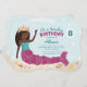 Celebrate your little mermaid with this illustrated kids' birthday party invitation featuring a hand-drawn mermaid and beach scene. This invitation has a customisable back side which includes a section for party details and a photo of the birthday child. Variations in mermaid's physical features available!