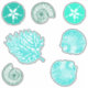 Summer sticker set of 7 sand dollars, coral and seashells in ocean blue and aqua