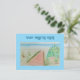 Watercolor of Christmas tree on the beach with Warm Christmas Wishes as greeting on a postcard.