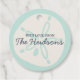 A summery sandollar gift tag in teal, ivory and navy blue.