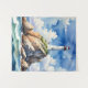 This watercolor seascape captures a solitary lighthouse perched atop rugged coastal rocks, standing resilient against the vast ocean below. Soft washes of blues and grays evoke the movement of sea and sky, while delicate brushwork highlights the contrast between the solid stone and the fluid water. The painting conveys a sense of calm, guidance, and quiet strength, inviting the viewer to reflect on the enduring relationship between land, sea, and light.