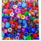 Colourful and ornamental toroidal-shaped beads in bulk. Simulated oil painting from a photography. Shower curtain to decorate your bathroom for fun and good mood.
