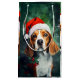 Colourful and joyful Christmas design with a Beagle wearing a Santa hat.