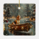 Set sail into the magic of the holiday season with this beautifully detailed illustration, showcasing a proud dog sitting in a festively decorated boat, gliding across a serene Christmas lake. The twinkling lights from nearby pine trees reflect off the water, casting a warm, festive glow that enhances the cosy ambiance. Ornaments dangle from the boat's sides, while glowing lanterns light the way, creating a scene that captures the true essence of Christmas warmth and joy. This nostalgic artwork brings a touch of holiday magic to any space, perfect for those who cherish the spirit of the season.