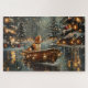 Set sail into the magic of the holiday season with this beautifully detailed illustration, showcasing a proud dog sitting in a festively decorated boat, gliding across a serene Christmas lake. The twinkling lights from nearby pine trees reflect off the water, casting a warm, festive glow that enhances the cosy ambiance. Ornaments dangle from the boat's sides, while glowing lanterns light the way, creating a scene that captures the true essence of Christmas warmth and joy. This nostalgic artwork brings a touch of holiday magic to any space, perfect for those who cherish the spirit of the season.