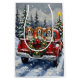 Bring happy, scent-hound charm to your holiday season with this adorable Beagle Christmas design! This festive scene features three cheerful and friendly Beagles sitting attentively in the back of a classic red pickup truck, nestled in a picturesque snowy winter forest. The vintage truck is adorned with a vibrant Christmas wreath, twinkling with red and gold ornaments and warm, glowing lights. Soft snowflakes gently fall, enhancing the winter wonderland effect. A decorated Christmas tree in the background completes this heartwarming picture, making it an ideal Christmas gift for any Beagle owner, dog lover, or admirer of festive and beloved dog art. This design perfectly captures the joyful spirit of the holidays.