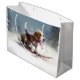 In this heartwarming Christmas design, a delightful scene unfolds as a furry companion joyfully embraces the winter wonderland. Picture a cheerful dog, filled with excitement and exuberance, riding in a snow sledge. The powdery snowflakes gracefully dance around them, creating a magical ambiance that captures the spirit of the season. With bright eyes and a wagging tail, the dog radiates pure happiness, perfectly embodying the joy of the holidays. The sledge, adorned with festive decorations, glides effortlessly through the glistening snow, leaving a trail of mirth behind. The enchanting landscape showcases the beauty of a winter day, with snow-capped trees and twinkling lights adding to the enchantment. This heartwarming Christmas design reminds us of the simple pleasures of the season and the precious bonds shared between humans and their beloved canine companions. It brings a smile to anyone's face and fills the heart with warmth and holiday cheer. Whether you celebrate Christmas or simply cherish the magic of winter, this delightful design captures the essence of the festive season, spreading happiness and love to all who behold it.