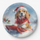 Beagle Dog in Sledge Let it Snow Christmas Paper Plate