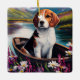 Beagle Dog on a Paddle: A Scenic Adventure Ceramic Ornament