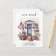 Announce your move to family and friends with our patriotic moving announcement featuring a beautiful watercolor painting of a Beagle dog, modern house with a blue door and the American flag proudly displayed on the front porch. This announcement is perfect for dog lovers and anyone looking to announce their new address. With its red, white, and blue colour scheme, this announcement is a great way to show your love for the USA while sharing your exciting news. Let everyone know that "We've moved!" and invite them to come visit and meet your best friend in your new home. COPYRIGHT © 2023 Judy Burrows, Black Dog Art - All Rights Reserved. Beagle Dog Patriotic Personalised Pet Moving Announcement Postcard