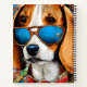 The ultimate in funky retro style, this pupper is sure to make a statement with their bold, colourful style! This playful pup is rocking a pair of oversized sunglasses with a bright pink frame, blue lenses, and purple and orange accents.