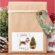 A cute beagle is humourous wearing a Christmas attire. Looking out next to a holiday tree, it left muddy paw prints. “Paws” and send funny holiday Christmas gift.