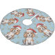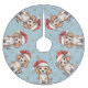 The cutest beagles decorate this tree skirt with a light blue background and gold glitter snowflakes.