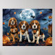 Unleash the spooky spirit with this eerie Halloween design featuring a pack of dogs under a dark, moonlit sky, surrounded by flying bats and glowing pumpkins. Perfect for those who love a touch of frightful fun with their furry friends!