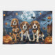 Unleash the spooky spirit with this eerie Halloween design featuring a pack of dogs under a dark, moonlit sky, surrounded by flying bats and glowing pumpkins. Perfect for those who love a touch of frightful fun with their furry friends!