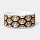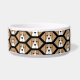White dog dish with cute beagle dog faces that fit together in a honeycomb shaped pattern.