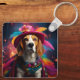 A playful Beagle dressed in a vibrant, whimsical costume against a glowing, magical backdrop. This enchanting design is perfect for animal lovers.