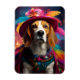 A playful Beagle dressed in a vibrant, whimsical costume against a glowing, magical backdrop. This enchanting design is perfect for animal lovers.