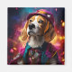 A playful Beagle dressed in a vibrant, whimsical costume against a glowing, magical backdrop. This enchanting design is perfect for animal lovers.