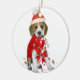 Cute Beagle Puppy in santa hat featured on Christmas Ornaments.