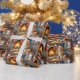 Beagle Sitting by Fireplace with Christmas Lights Wrapping Paper