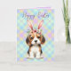 This adorable card features a cute watercolor of a Beagle all dressed up for Easter. The front of the card says "Happy Easter" in a playful font, while the inside says "Easter is a time of renewal, a testament to life's beautiful resilience. It's a moment to cherish the blossoming of hope, and the joy that springs forth in every heart." in a matching style. You can customise this card with your own message and recipient name, making it a perfect way to express your love and appreciation for your special someone. This card comes with a white envelope. It measures 5x7 inches when folded.