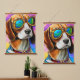 Beagle Wearing Sunglasses over colourful rainbow colours.